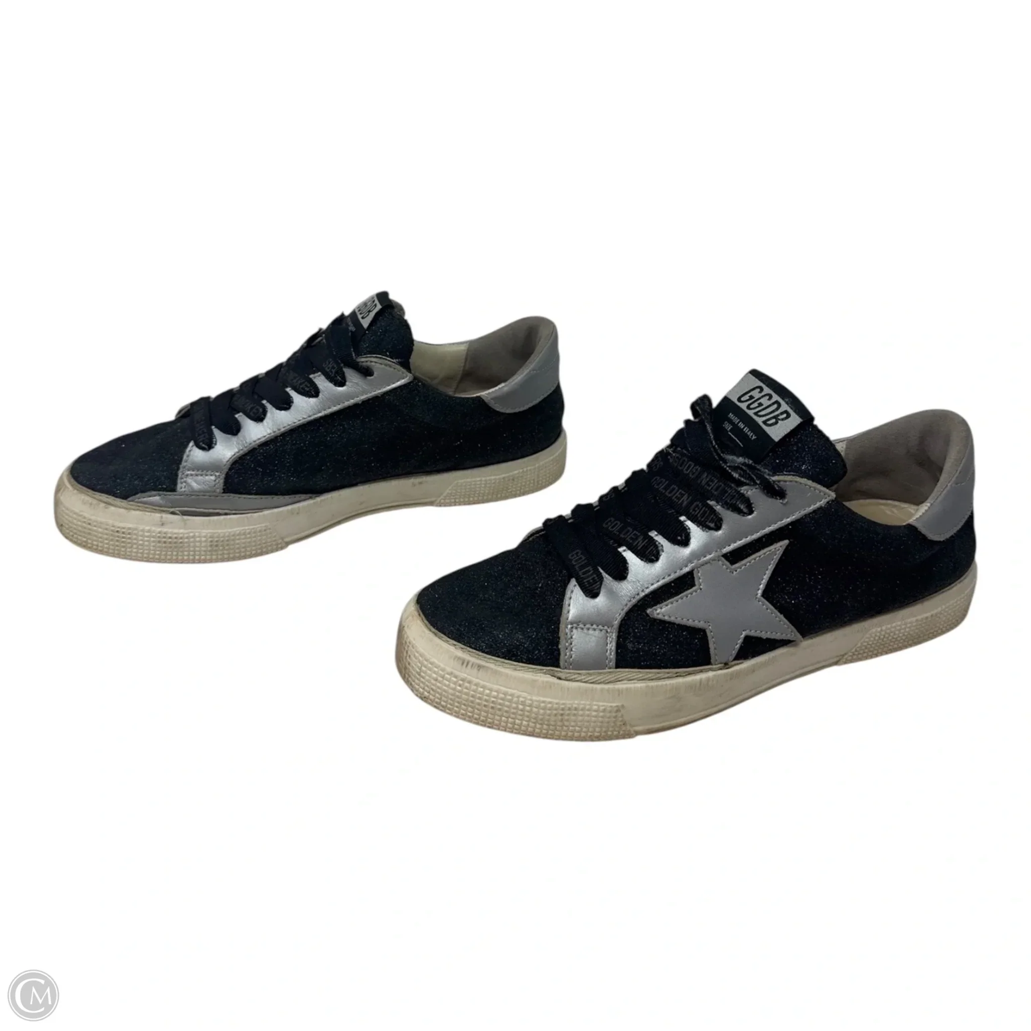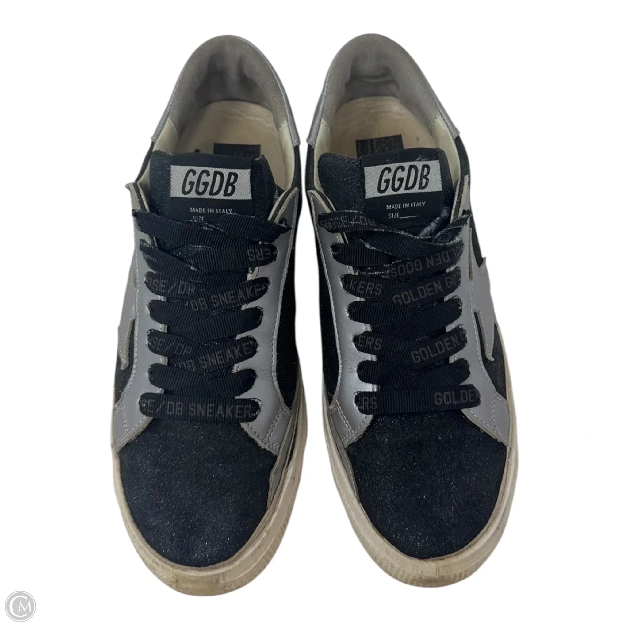 May Glitter Sneaker Shoes Luxury Designer By Golden Goose In Black & Silver, Size: 7.5 (EU 38)